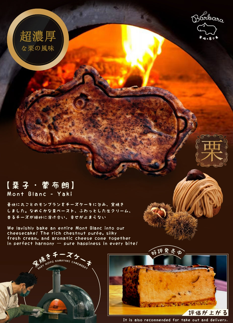 Camembert cheesecake baked in a kiln at high temperature for a short time has a rich caramelized flavor. Most of our ingredients are sourced from Japan, and we use several types of cheese in the cheesecake. The cheesecake is aged for at least 24 hours before being delivered. Please enjoy our signature desserts.